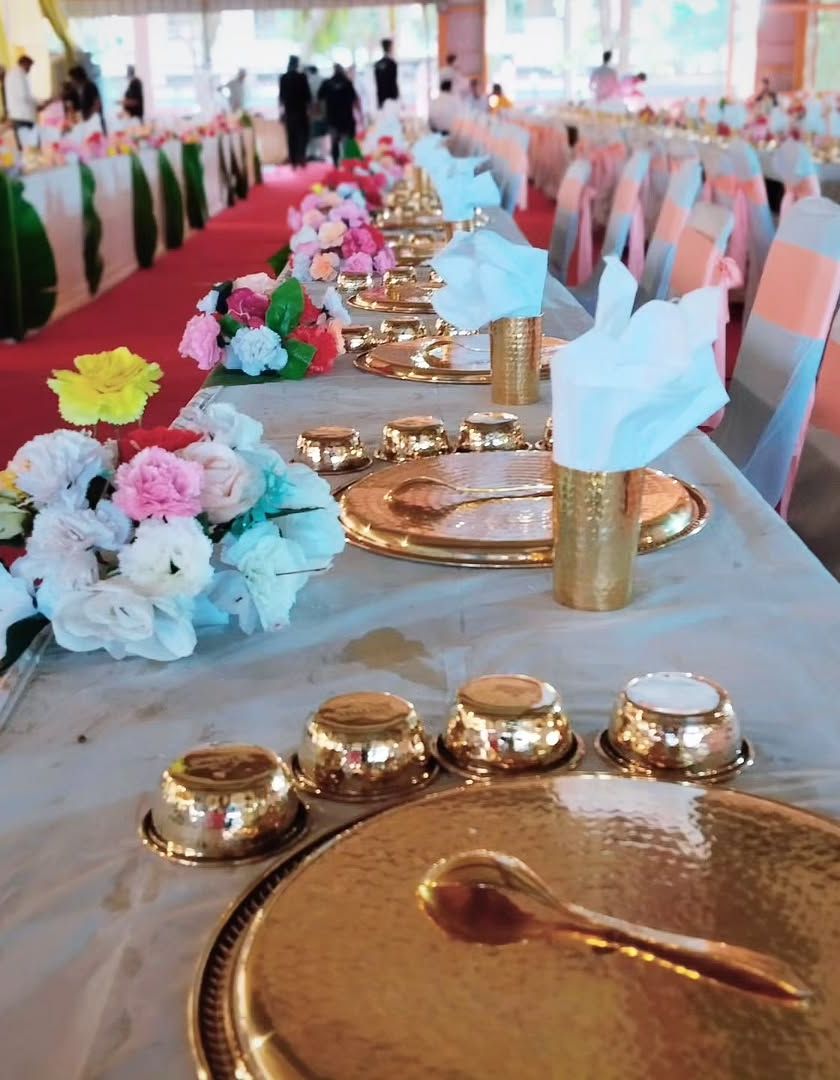 We specialize in creating authentic, seated dining experiences, particularly for Jain and Rajasthani ceremonies. Our service includes elaborate golden or silver thali settings, ensuring every guest feels like royalty while respecting all religious and cultural traditions.