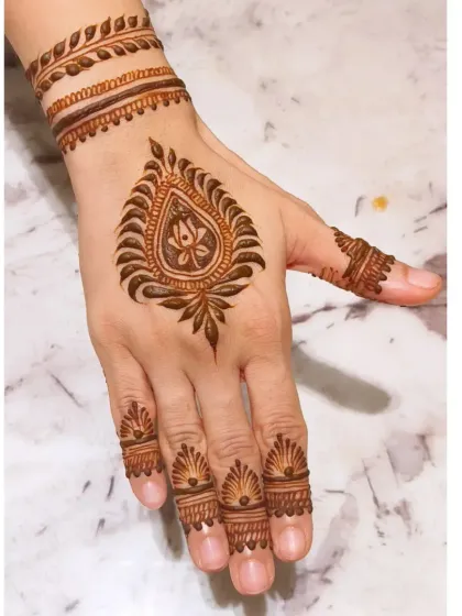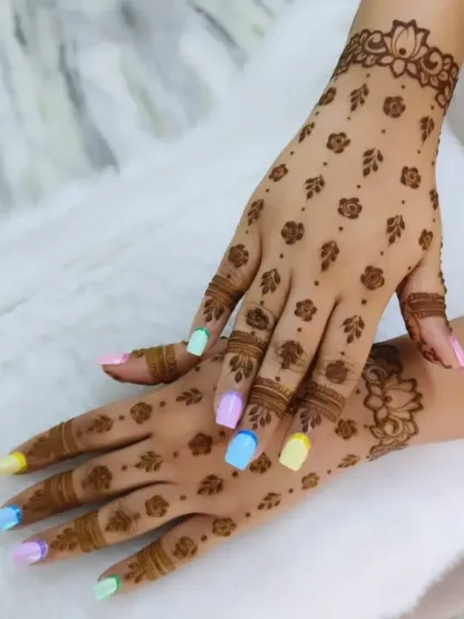 - For guests, I make it quick but pretty: minimalist lines, Arabic strips (bel), simple mandalas, or sometimes just finger details. This way, nobody feels left out and everyone looks festive.