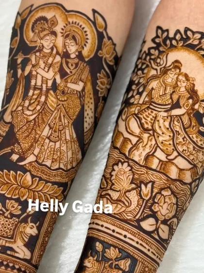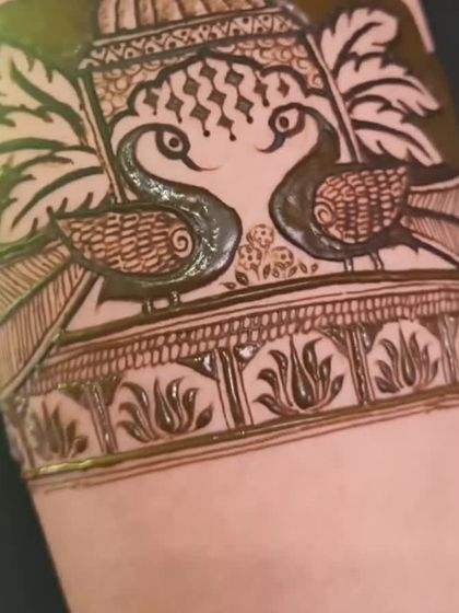 For every festival, I bring out something unique. Karwa Chauth special mehandi with diya and kalash, Raksha Bandhan sibling mehandi like portraits or swings, and my Garba motifs for Navratri - I go all out. From peacocks and lotuses to quirky little elements, I mix up tradition and fun, so your mehandi feels personal.