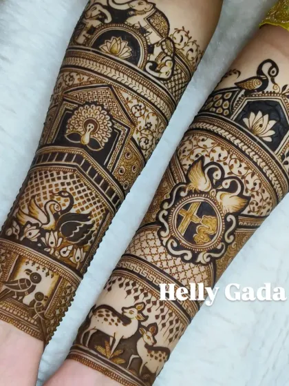 Hey, I’m Helly. Mumbai is home, but my mehandi travels wherever you want. Been at this for 15 years, and honestly, every new hand is like a fresh canvas. I get a kick out of weaving real stories into the designs—family, inside jokes, all of it. Had the chance to do mehandi for Jain Diksharthi's once, and it hit me deep. ‘Saiyami vichre sidhina shikhre’ (wander with restraint, reach the top)—that’s how I work. Let’s make your story part of my art.