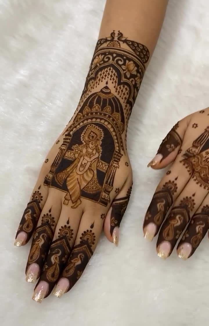 For those who hold faith close to their heart, I create intricate depictions of divine figures like Radha-Krishna and Shiv-Parvati. These designs are perfect for spiritual milestones, festivals like Janmashtami, or as a sacred element in your bridal mehndi.