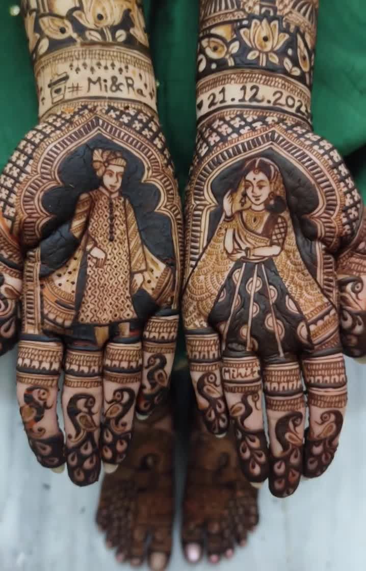 I see every bride and groom's hands as a canvas for their love story. I specialize in creating detailed portraits that capture your likeness and the unique bond you share, making your bridal mehndi a timeless keepsake of your wedding day.