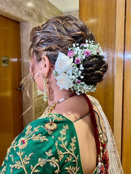Your hairstyle completes your look. My team and I specialize in a wide range of hairstyles, from classic Indian buns adorned with fresh gajra and modern accessories to romantic beachy waves and intricate braids that are designed to last.