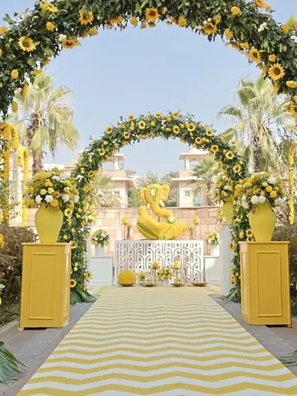 We are full-service wedding and event planners in Delhi NCR, specializing in lavish decor for weddings, Haldi, and Mehendi ceremonies. We provide complete solutions, from our own farmhouse venue in Noida to DJs and fireworks.