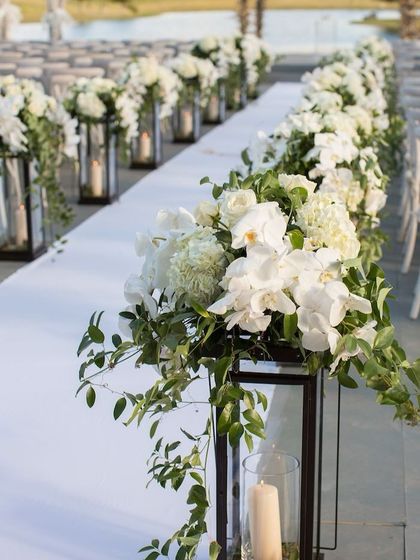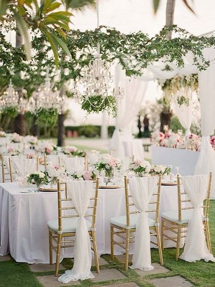 Premium Custom Designs - Lavish or simple, we create bespoke decor with chandeliers, drapes, umbrellas, and cold pyro wedding fireworks.