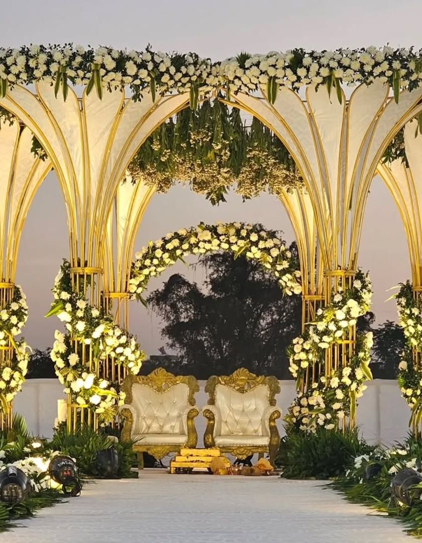 I design and build stunning mandaps and stages for the main wedding ceremony and reception. Whether you want a classic floral design, a modern minimalist setup, or a grand, opulent stage, I create the perfect centerpiece for your big day.