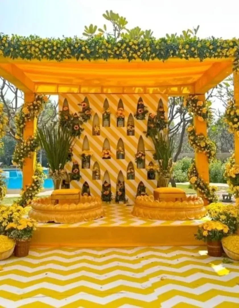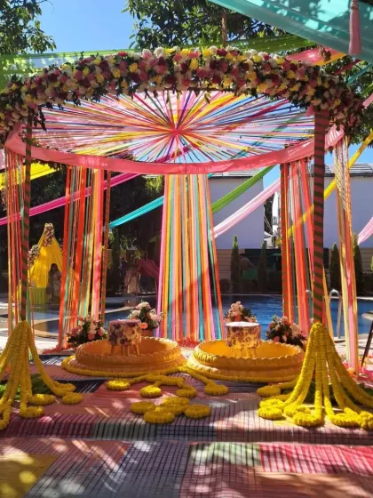 I specialize in creating lively and colorful decor for Haldi and Mehendi ceremonies. This includes everything from traditional marigold and drape work to quirky setups with Rajasthani umbrellas and custom photo backdrops, perfect for functions in Noida, Delhi NCR, and beyond.
