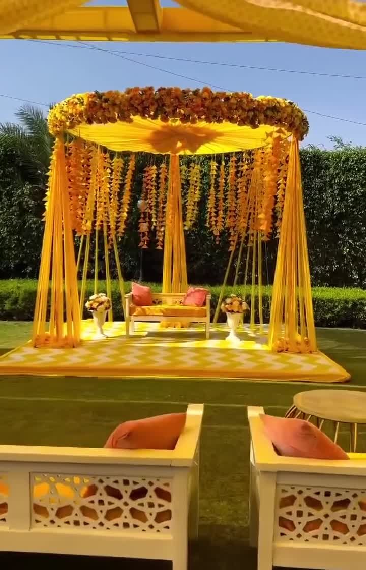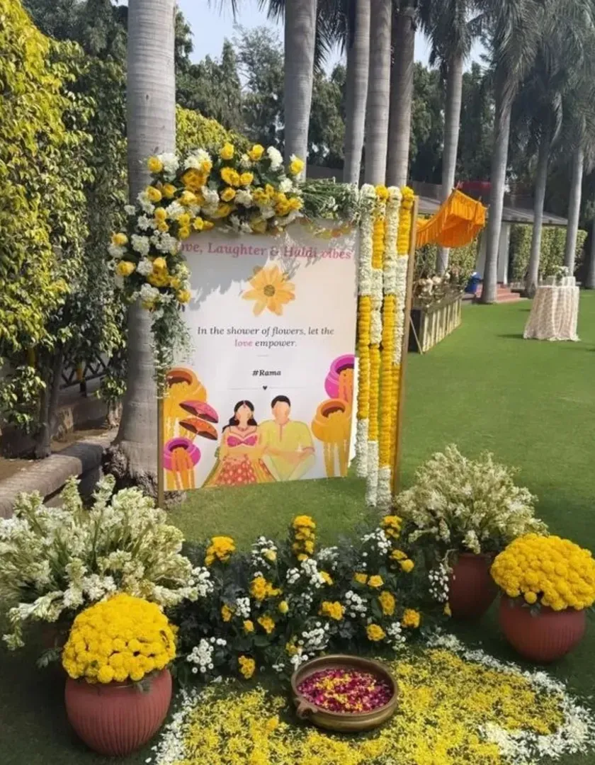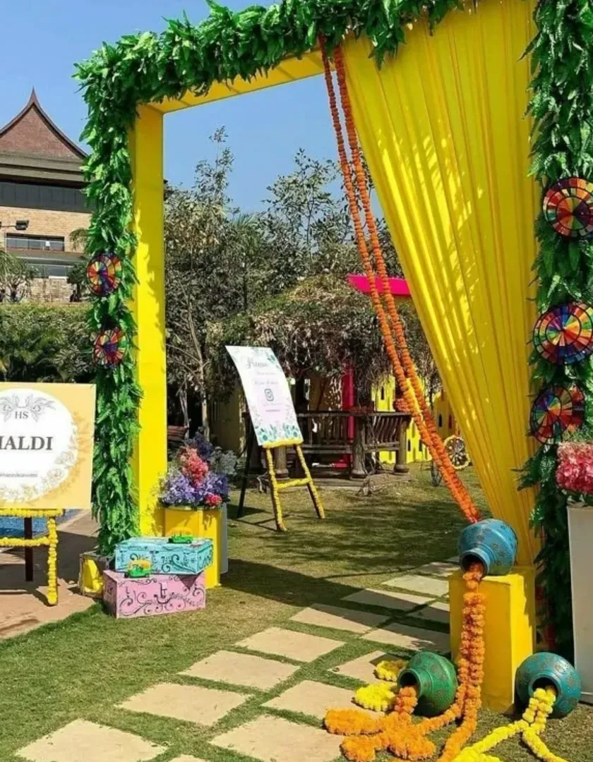 This is my specialty. I create vibrant and joyful setups for Haldi and Mehendi functions, making them the highlight of your pre-wedding events. I design everything from traditional marigold backdrops and floral jhulas (swings) to modern, colorful photo booths and comfortable seating areas for your guests.