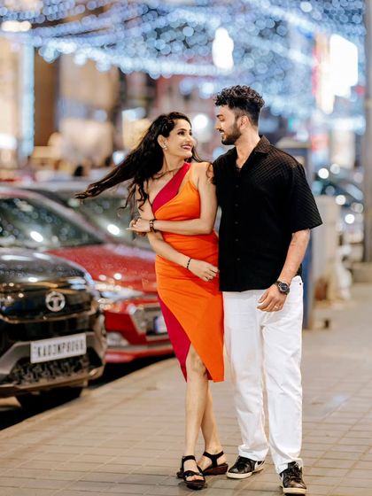 Every couple’s vibe is different, so I don’t do cookie-cutter shoots. I look for those real moments - your laughter, the way you look at each other, even the awkward takes that sometimes turn out to be the best ones. If you hear me say, "Matte matte, eradane take," (Again and again, second take) it just means I’m chasing that perfect candid shot. I want you to feel at ease, so I keep things fun and relaxed - nothing forced.
