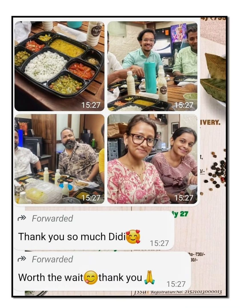 My service is built on the love and support of my customers, who I consider my extended family. This gallery is a collection of their happy faces, heartfelt feedback, and the journey my food takes to reach them, showcasing the trust and personal connection we share.