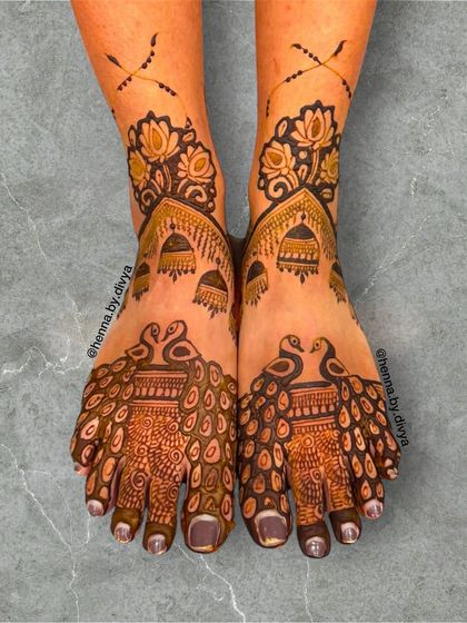Complete your bridal look with stunning mehendi for your feet. I create designs ranging from delicate anklet styles to full coverage patterns that extend towards the knee, ensuring your feet look beautiful for all the wedding rituals.