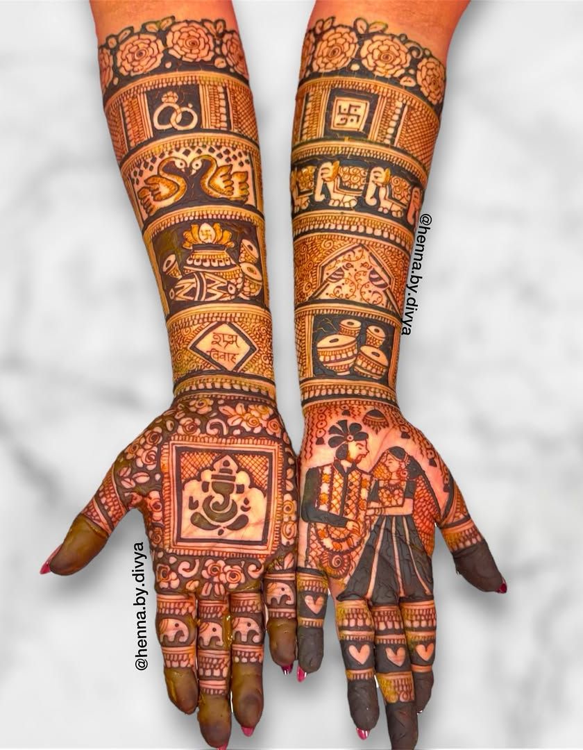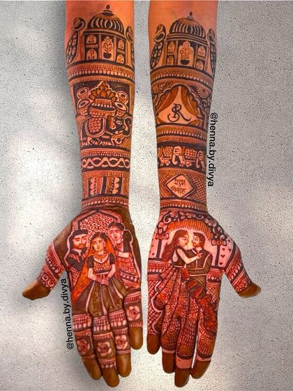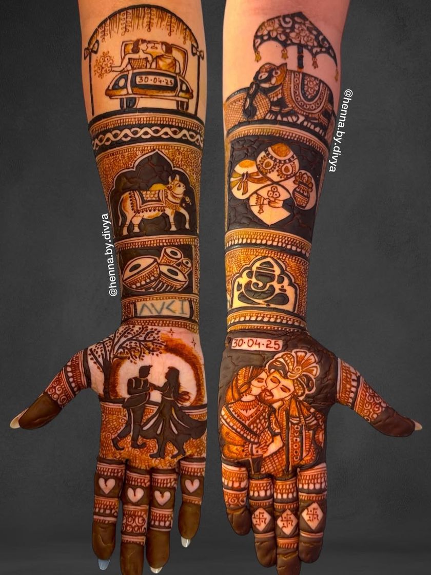 Your mehendi should be as unique as your love story. I specialize in weaving personal details into your bridal henna, from couple and family portraits to your pet's face, important dates, or meaningful symbols.