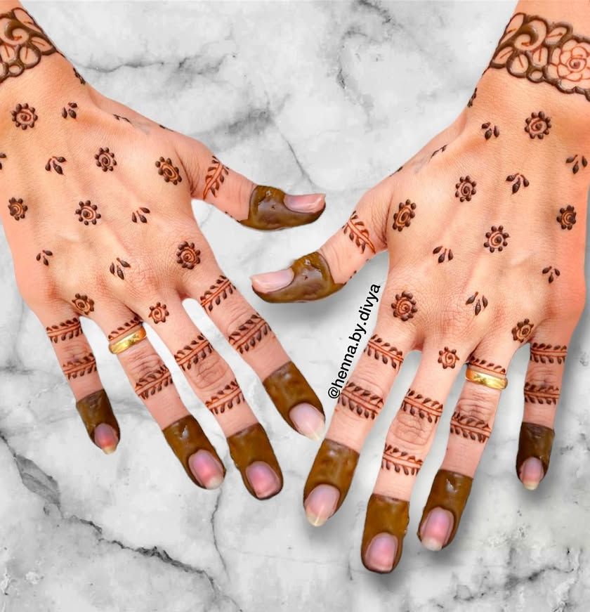 For those who believe less is more. This collection is for guests who want a touch of henna that is simple, chic, and modern. These designs focus on delicate finger work, small central motifs, and graceful patterns that enhance your hands without full coverage.