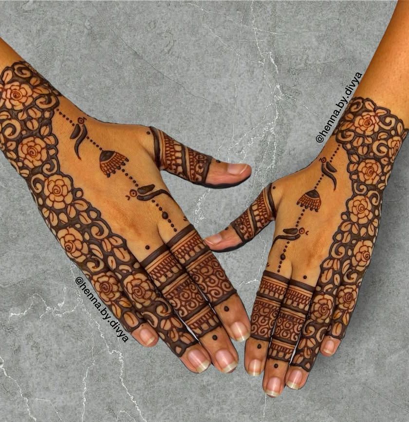 This collection showcases the beauty of flowing Arabic patterns and modern Indo-Western fusion designs. Arabic mehendi is known for its bold trails and open spaces, while Indo-Western styles mix traditional motifs with contemporary layouts for a unique look.