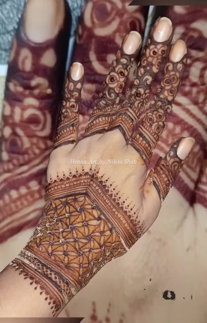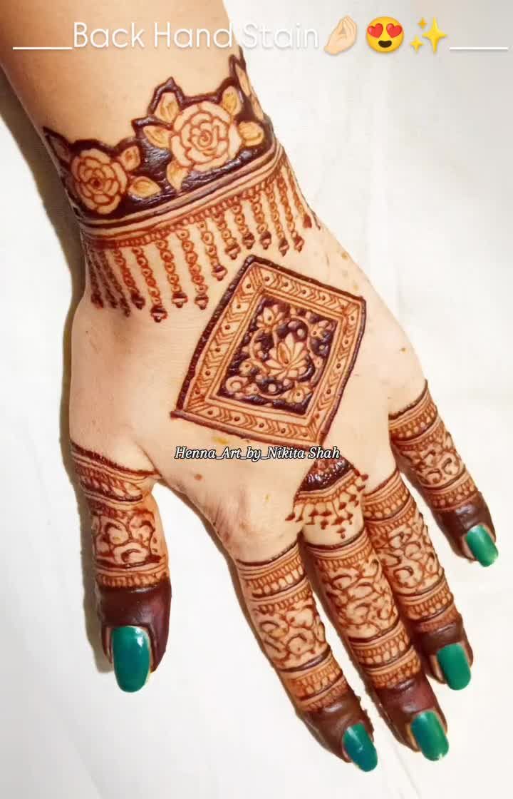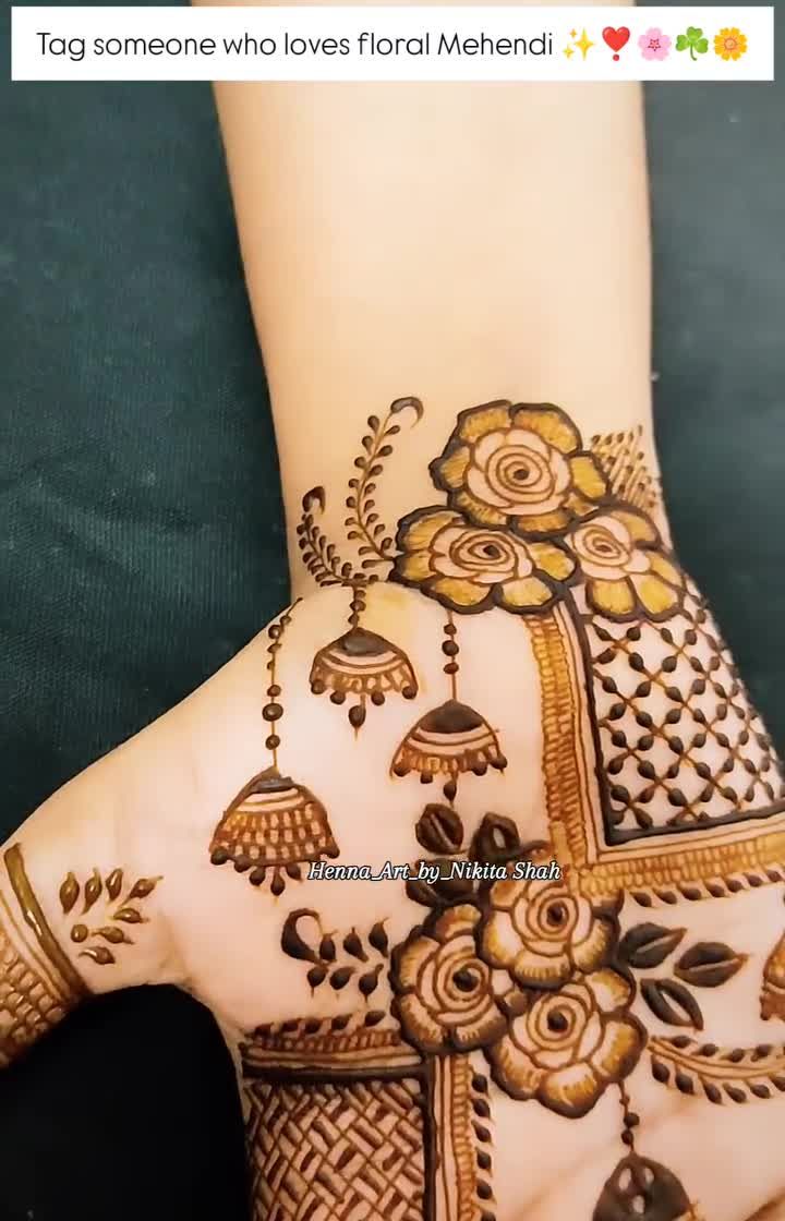 I create a wide variety of designs for the back of the hands and feet. This includes everything from simple and elegant floral patterns to intricate, full-coverage traditional designs that complement your bridal look.