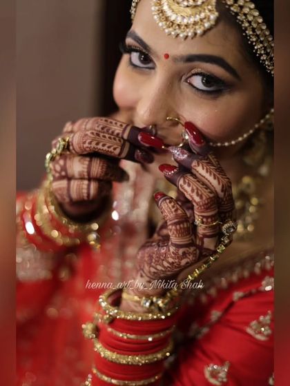 I specialize in creating personalized bridal mehendi that tells your love story. From depicting your proposal and wedding rituals like pheras and kanyadaan to including your wedding hashtag or portraits of your pets, I make sure your mehendi is all about you.
