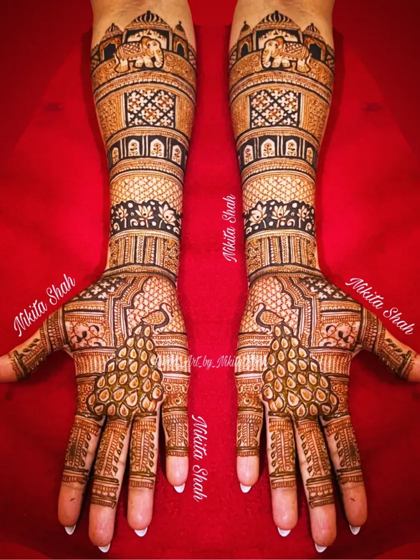 This collection showcases the beauty of classic Indian mehendi, filled with intricate details and timeless motifs. I specialize in creating dense patterns with peacocks, elephants, swans, and architectural elements for a rich and royal look.