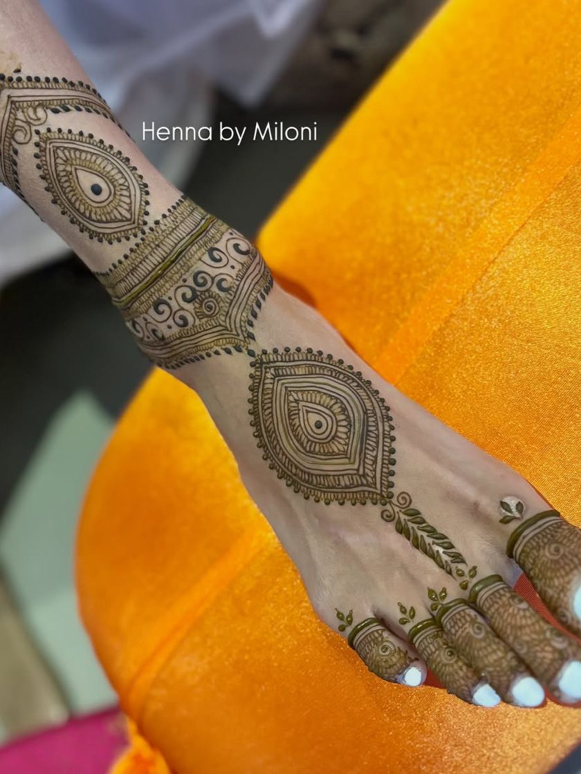 I create beautiful mehendi for feet, from heavy, full-coverage patterns that complete the bridal look to lighter, elegant designs perfect for festivals like Karwa Chauth or other special occasions.