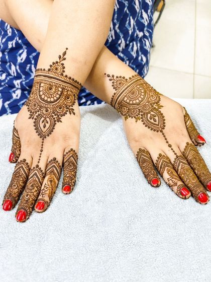 Hey, I’m Reshma - your friendly henna artist from Bangalore. Henna isn’t just work, it’s my passion, my happy place. Getting ‘hennafied after ages’ – ah, that feeling! I’m all about hands adorned, memories made. Mandalas, deep stains, that organic touch – I fuss over it. Only pure stuff, no shortcuts. Henna Happiness, always. 🌿