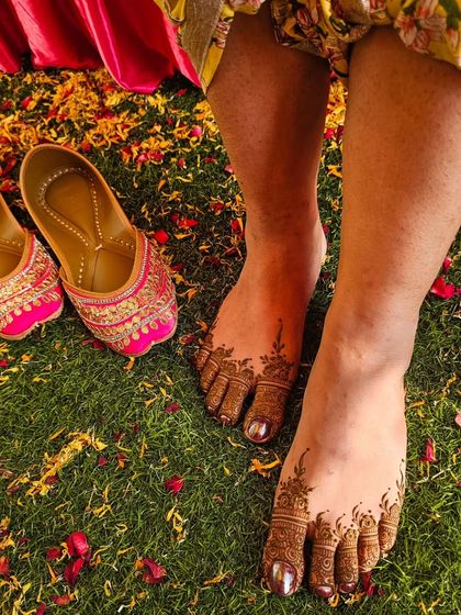 Complete your bridal look with beautiful henna for your feet. I create designs ranging from simple and elegant mandalas to full, intricate patterns that complement your hand and arm henna.
