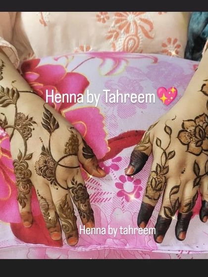 Hey, I'm Tahreem from Mumbai. Mehendi is my thing, and honestly, nothing beats the feeling when my hands are all stained at the end of a long day. I work with my bestie Taiba and our small team, and trust me, we have a blast—work feels like a party! Whether it’s a simple floral or full bridal mehendi, every design is special. That smile on my client’s face, bas, that’s why I do this.