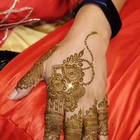 For Karwa Chauth, I create special designs that tell a story, often including figures of a couple, the moon, or a sieve (chalni). Whether you want a detailed narrative on your palm or a simple symbolic design, I can customize it for you.