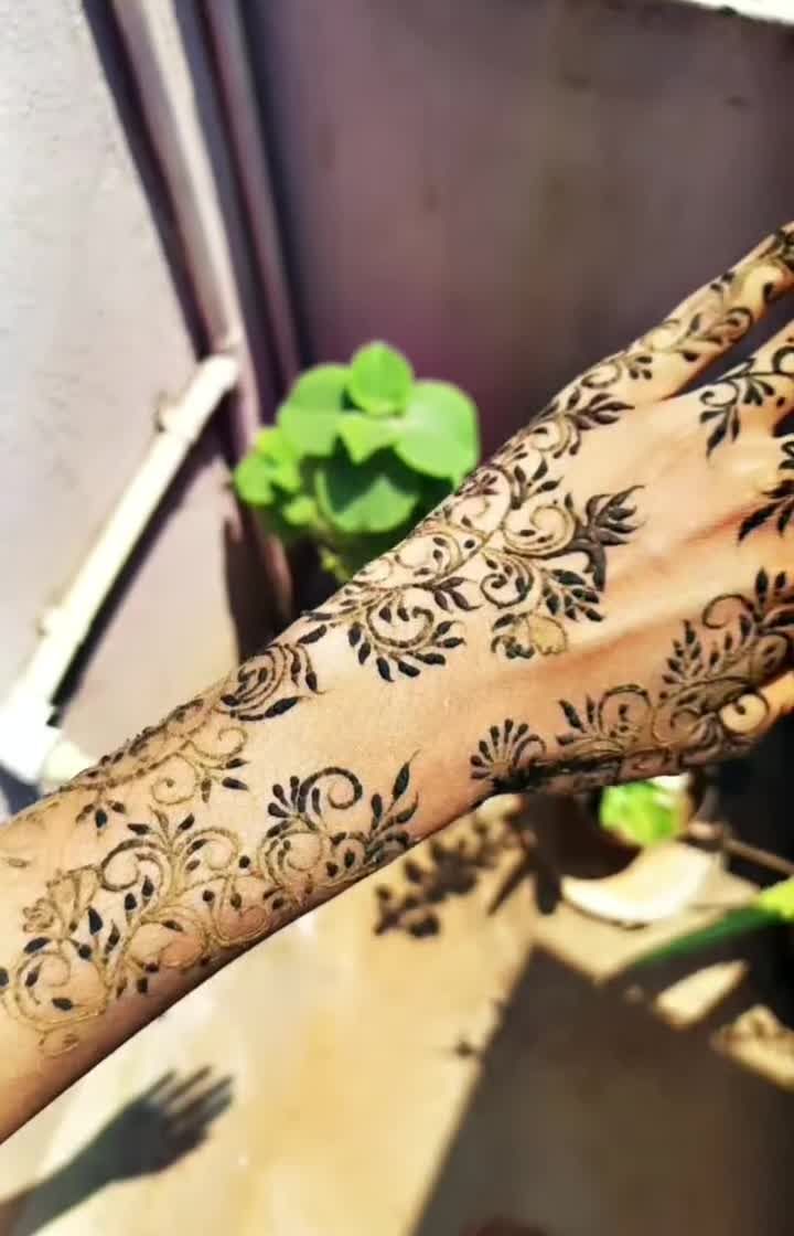 See how I bring my designs to life using my own handmade, organic henna cones for a safe application. This section also shows the beautiful, deep stain you can expect with proper aftercare.