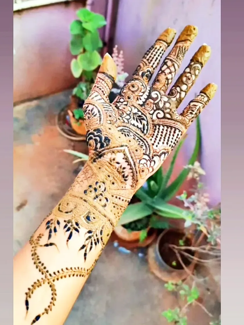 For those who love a more complete look, I offer intricate designs that cover the entire palm or back of the hand. These patterns combine traditional motifs with modern fills, perfect for sangeets, festivals, and special occasions.