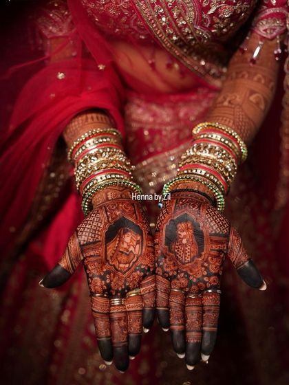 I create custom bridal mehendi with your story, personal details, and natural deep stain for you and your wedding guests, anywhere you need.