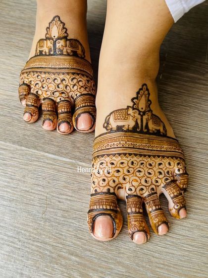 Complete your bridal look with beautiful henna for your feet. I create designs ranging from simple, chic ankle patterns to full, intricate leg mehendi that perfectly complements the designs on your hands.