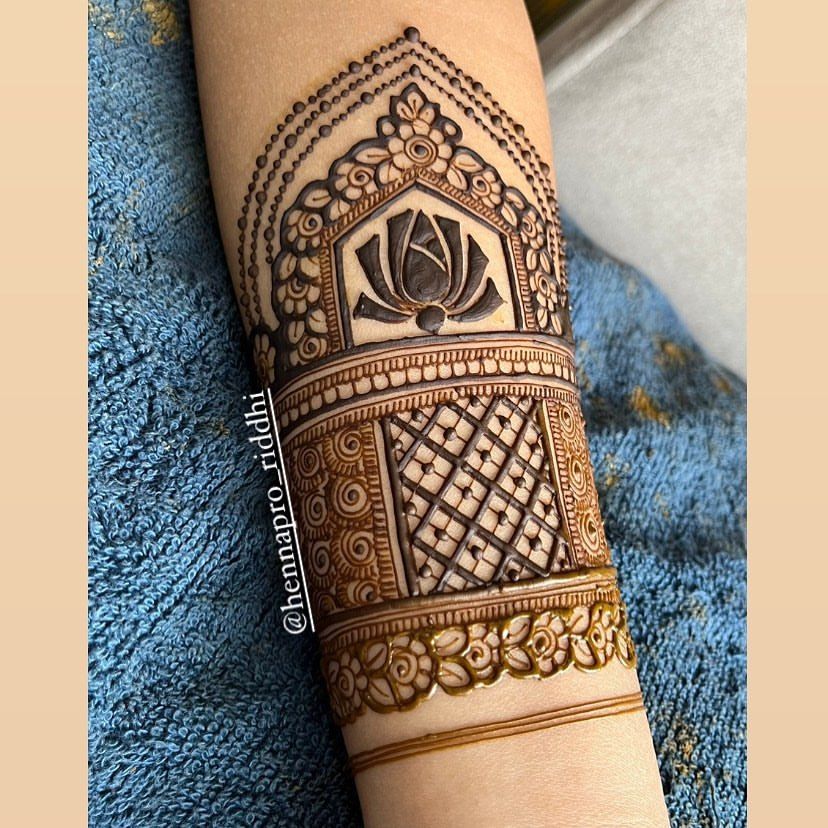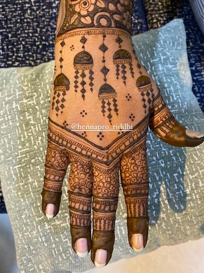 Sometimes, less is more. I create chic and modern henna designs, focusing on clean lines, delicate mandalas, and simple motifs like lotuses or jhumkas for a touch of elegance without full coverage.