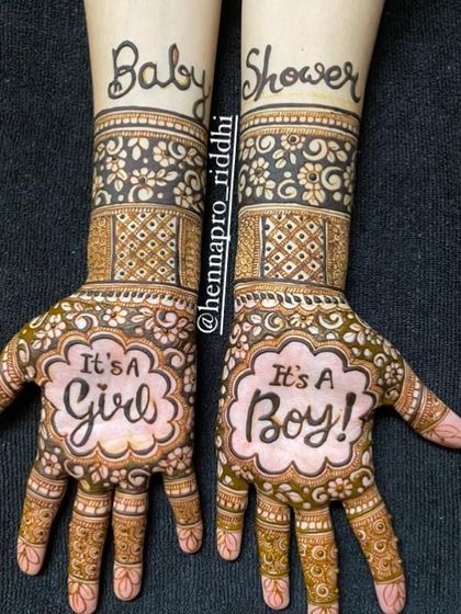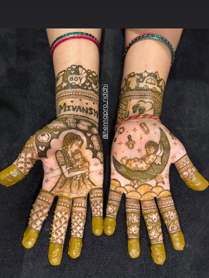 I create adorable, personalized henna to celebrate your journey to parenthood. We can include cute motifs like baby footprints and bottles, or special text like 'Mom-to-be' and gender reveals.