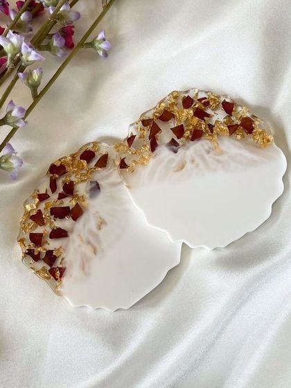 I design custom resin coasters for any occasion, available in geode, floral, mandala, or even logo designs. You can pick your colors, from deep blues to classic black and white, and add a touch of sparkle with gold or silver flakes.