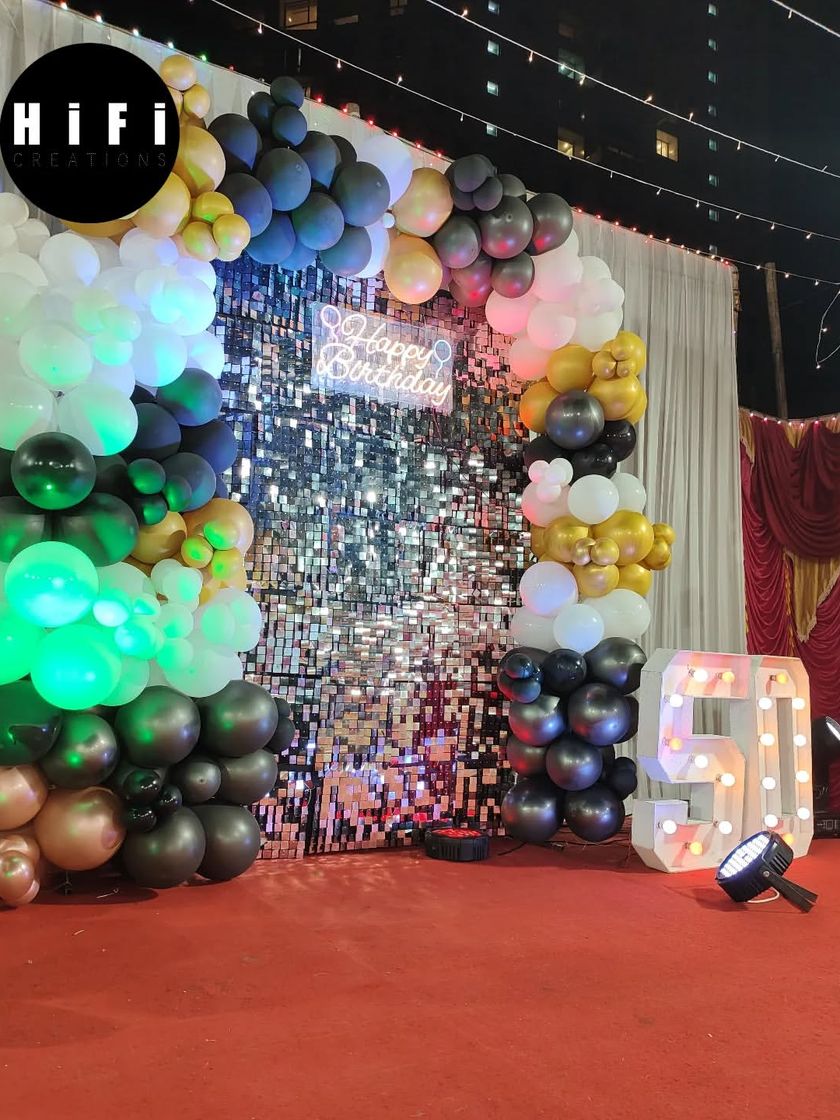 We create sophisticated and stylish decorations for milestone birthdays and anniversaries. Whether it's a 25th anniversary or a 50th birthday, we use elegant balloon arches, custom neon signs, and marquee numbers to make the occasion shine.