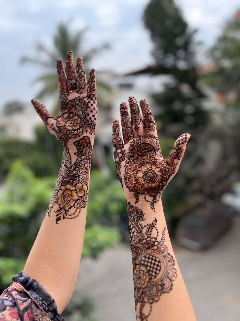 I specialize in creating highly detailed and elaborate mehendi designs that cover the hands and arms. Whether you prefer traditional Indian patterns, florals, or modern graphics, I can create a custom look for you.