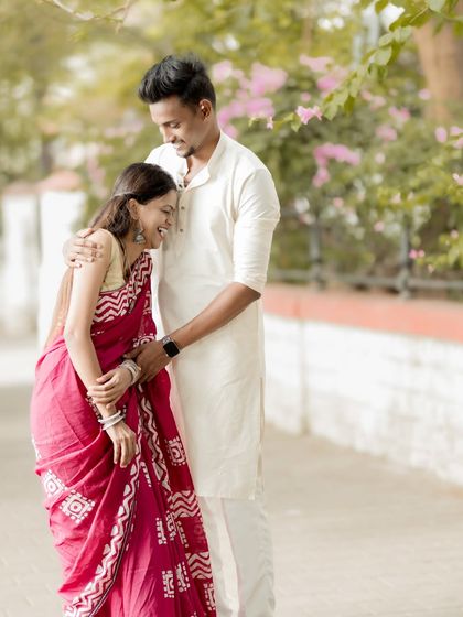 Pre-wedding shoots are about capturing who you are together, not just posing for fancy photos. I want to create something that actually feels like you - whether that’s filmi and grand, super chill, or rooted in tradition (think sarees, kurtas, or even a cheeky ukhane). No fake smiles or awkward poses - just your real vibe.