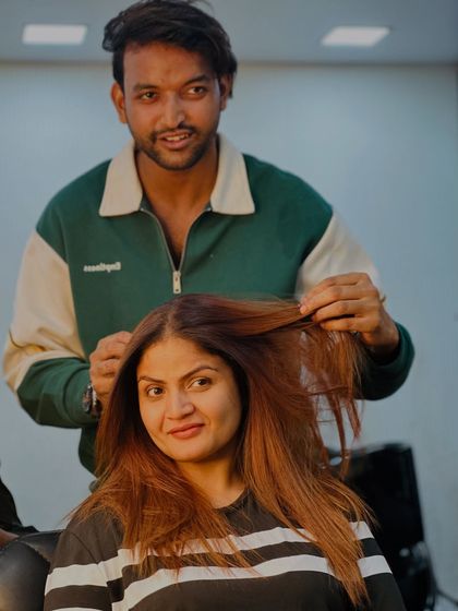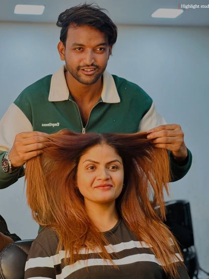 Hey, we’re Highlight Hair Studio, right here in Vile Parle. You’ll meet Kalim, Anas, Kaif, and a few more faces – we’re all obsessed with hair. For us, this isn’t just work, it’s life. Every day’s a chance to play with colour, style, and watch people light up. You come in for a shaaadimubarak (happy wedding), or just a pick-me-up, and we’re pumped to be part of it. Sit, chill, your hair’s our responsibility.