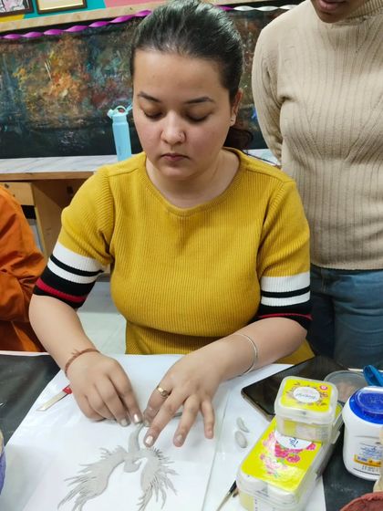 Explore the world of three-dimensional art with our hands-on workshops. We teach various techniques including traditional Indian Lippan and Shilpkar art, ceramic painting, and creating detailed relief murals with clay.