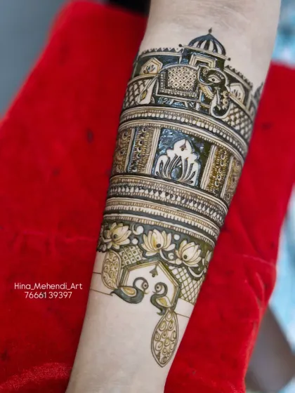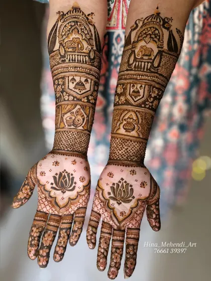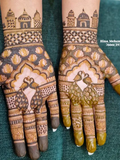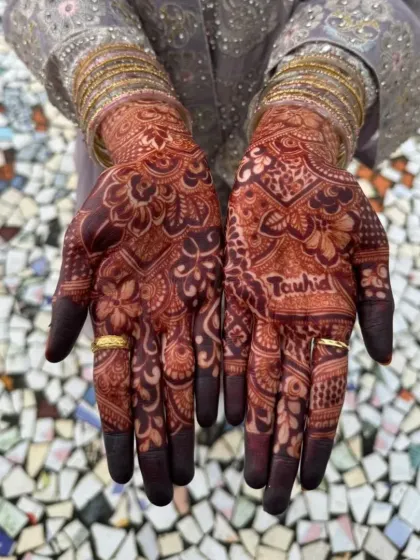 I am a professional mehendi artist specializing in bridal designs that tell a story. I create clean, detailed art by incorporating personal elements like portraits, names, or special dates into your mehendi.