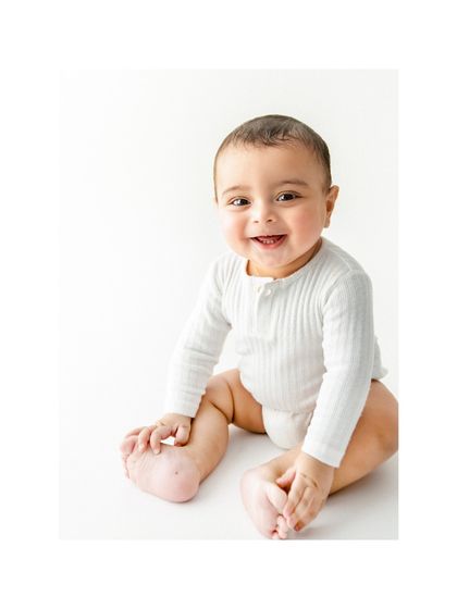 I photograph your baby’s milestones in a simple, natural style at my Noida studio, with all props and setups provided so you just bring your baby.