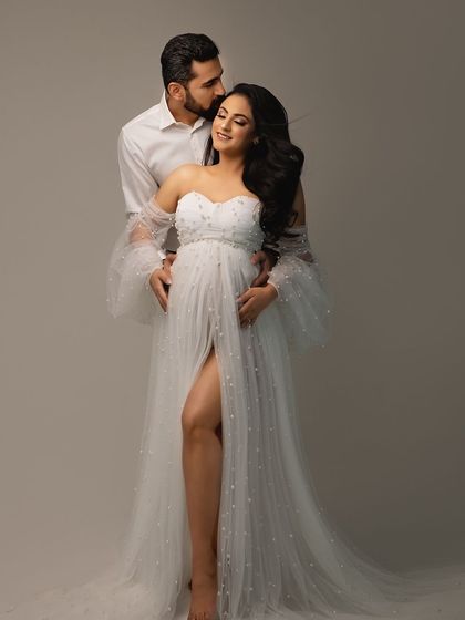 For those who dream of a fairytale maternity session, this is for you. I provide access to a collection of beautiful, flowing gowns that add a touch of magic and elegance to your portraits, whether you prefer a classic white, a soft pastel, or a vibrant color.