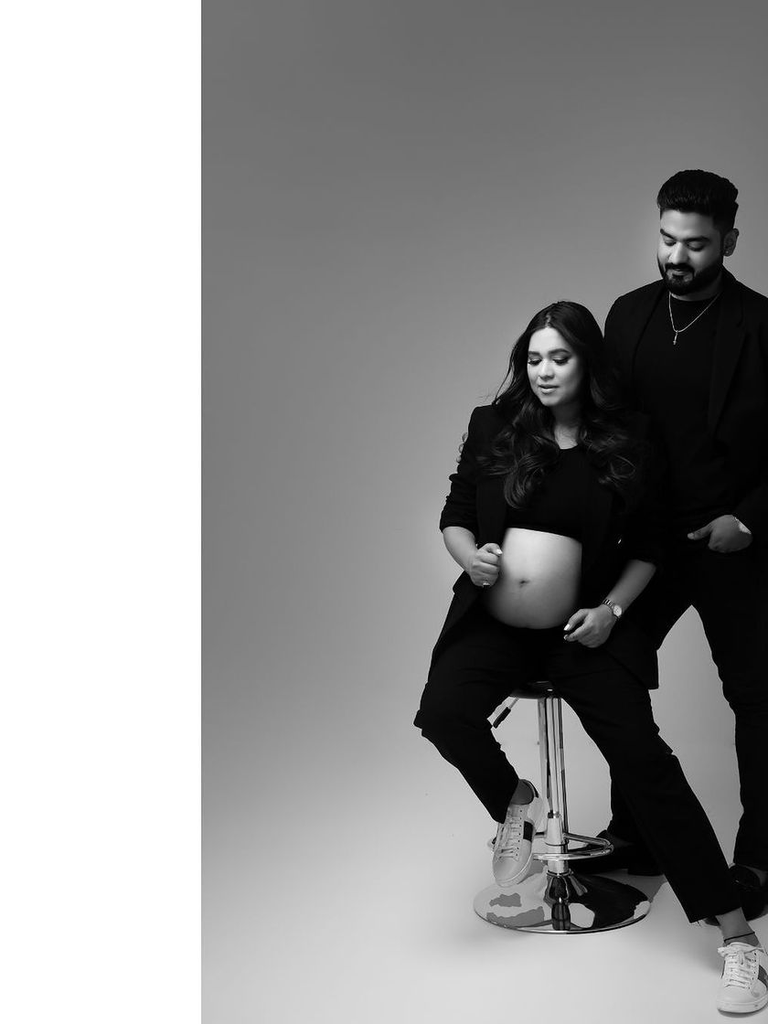 This collection is for the bold and fashion-forward. We can create a high-end, editorial look using dramatic lighting, modern styling with pantsuits, and elegant black gowns. These sessions are about capturing your power, confidence, and unique style during pregnancy.