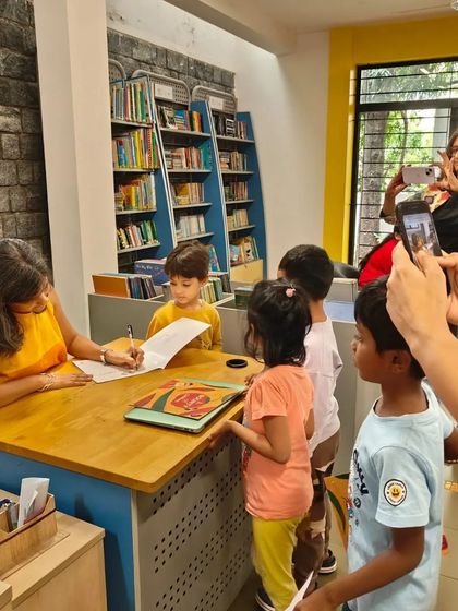 We offer a kids' library membership where children can borrow curated books, join weekend story and craft sessions, meet authors, and take part in fun events and reading challenges in a friendly space.