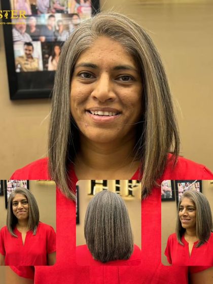 We offer custom hair coloring, highlights, balayage, creative shades, and grey transformations with a personal consultation and styling included.