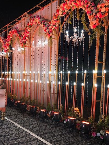 This is the heart of your celebration, from the sacred vows at the vidhi mandap to the grand reception stage. We create beautiful backdrops for your most important moments, focusing on both traditional designs and modern aesthetics.