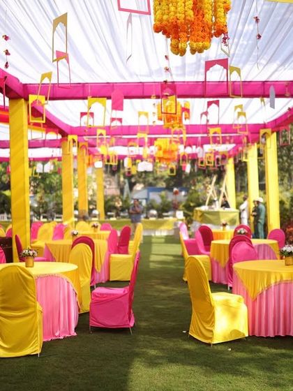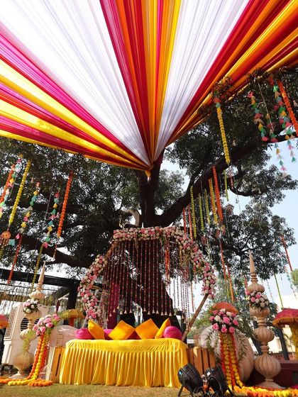 We love the energy of pre-wedding events and create decor to match. Whether it's a colorful outdoor Haldi, an elegant Mehendi, or a high-energy Sangeet night, we set the perfect vibe for the *khana pina* and *nacho tappo*.