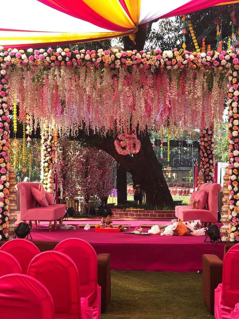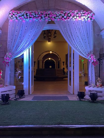 Bringing the wedding festivities to your home. We transform your personal space for pre-wedding rituals and celebrations with floral arrangements, lighting, and decorative hangings.