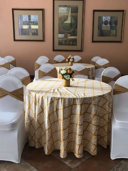 We focus on every detail to ensure your guests are comfortable and impressed. This includes elegant table settings with centerpieces, coordinated chair decorations, and overall venue lighting to create the perfect mood.