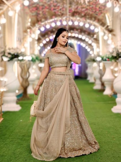 Get ready to dance the night away in an outfit that sparkles and shines. My Sangeet and Reception collection features modern lehengas, gowns, and Indo-Western wear with sequins, mirror work, and contemporary cuts for a glamorous party look.