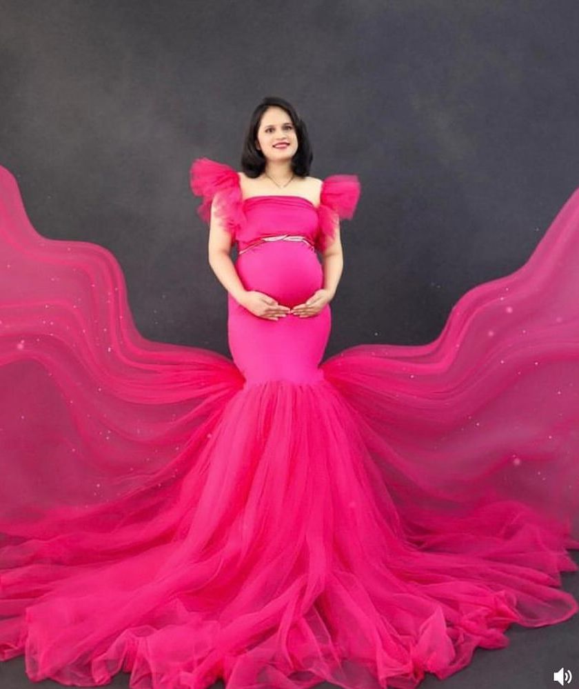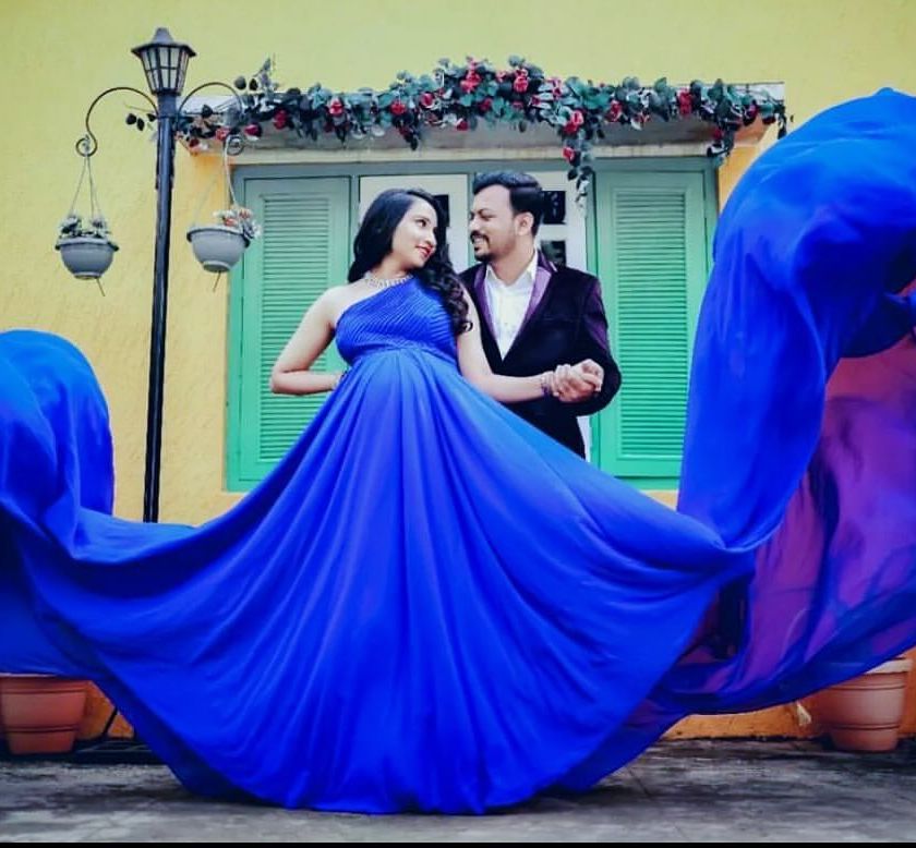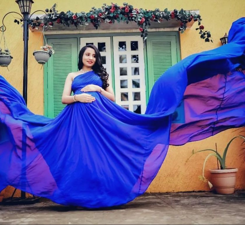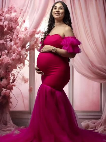 My mermaid gowns are designed to celebrate your beautiful curves and baby bump. This modern, fitted style is perfect for showing off your silhouette, with details like off-the-shoulder necklines and tulle trains that add a touch of glamour. These gowns are available in a variety of vibrant colors for both studio and outdoor photoshoots.